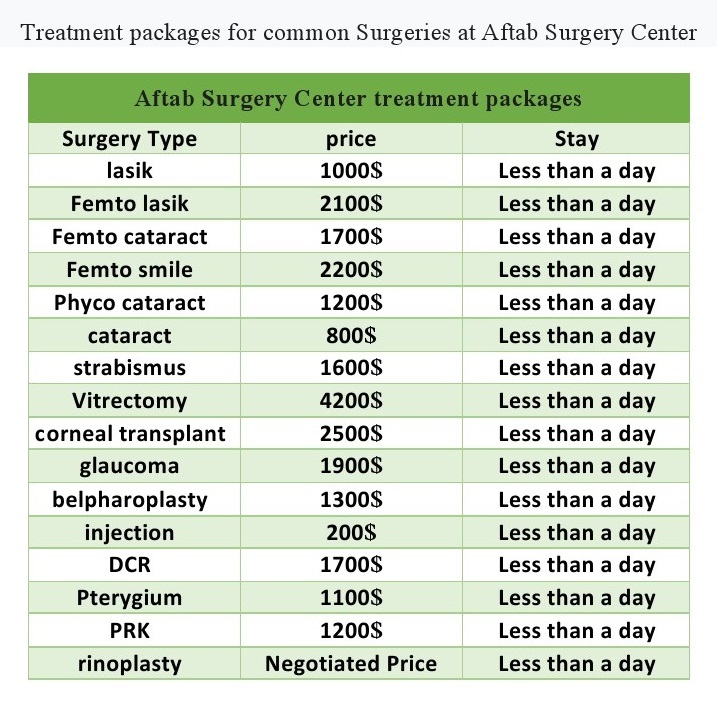 International Patients Unit Packages – Aftab Outpatient Surgery Center